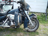 Oh well, just a minor glitch in life. This is what falling down at 55 will do for you. It also comes complete with a bit of road rash. No other injuries but the bike is toast. Even the frame is bent. $10k damage. My new "Other Woman" is a 2002 Low Rider (it's the last picture in this post); I'll pick it up in 2 weeks when the road rash heals enough to ride. Currently it's waiting for me at Zepka's HD in Johnstown, PA. Go see them, they're good people http://www.zepka.com/. Yes, my wife thinks I'm an idiot; Yes there's a bit of rash where the hole below the pocket is located (but I spared you the displeasure of looking at my scraped butt) & yes, this is the first time I've been down since June 1966 when I got on a bike for the first time ... I did hit a deer once but didn't go down so that doesn't count.